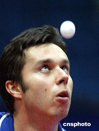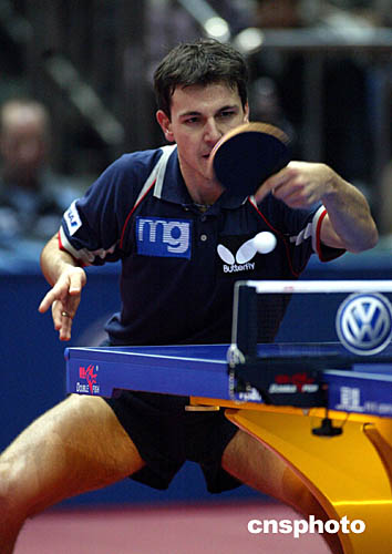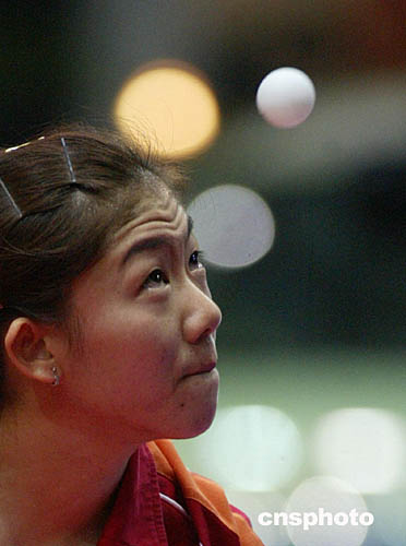 二零零四年十二月十日晚,在北京舉行的大眾汽車2004年國際乒聯(lián)職業(yè)巡回賽總決賽八分之一比賽中。中新社記者:武仲林
