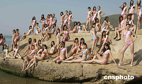 來自中國各地的六十二位參加第十七屆世界模特小姐大賽中國賽區(qū)總決賽的選手,日前來到深圳風景秀麗的海邊,身穿泳裝展示風采。中新社記者:錢興強