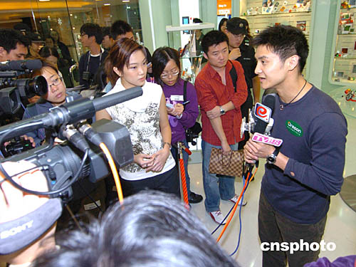 | 中國(guó)跳水金牌選手田亮11日來(lái)到香港時(shí)代廣場(chǎng)8層電子產(chǎn)品專賣店﹐為該店圣誕節(jié)禮品促銷造勢(shì)。中新社記者:趙振清
