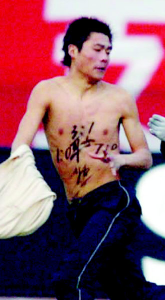 昨天下午,在首屆中超杯決賽中,擁有主場之利的魯能泰山隊?wèi){借舒暢和王超的進球,2:0擊敗聯(lián)賽冠軍深圳健力寶隊,如愿將中超杯冠軍獎杯留在了濟南。在王超打入第二球后,賽場上出現(xiàn)了戲劇性一幕,一名赤膊的年輕球迷突然沖進賽場,上演了國內(nèi)綠茵場的首次“裸奔”鬧劇。