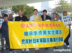 日本軍國主義在中國南京大屠殺67周年之際,香港工會(huì)聯(lián)合會(huì)社會(huì)政策委員會(huì)成員13日在香港的日本駐香港領(lǐng)事館前舉行游行,聲討日本軍國主義的罪行,為遇難者哀悼。作者:趙振清