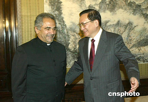 中國(guó)國(guó)務(wù)委員唐家璇十二月十四日在北京中南海會(huì)見來訪的東帝汶外交部長(zhǎng)奧爾塔。中新社記者:史利
