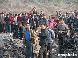 圖:湖南湘潭譚家山礦難現(xiàn)場(chǎng)家屬焦急等待