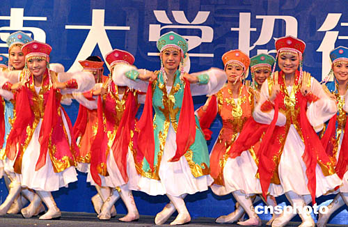 | 圖:暨南大學(xué)學(xué)生表演蒙古族舞蹈《歡樂的草原》