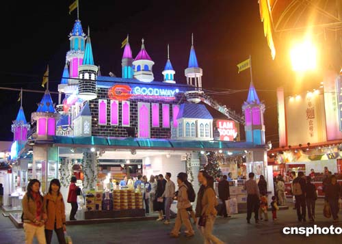 圖為經(jīng)營小型家用電器的威馬企業(yè)參展攤位,外型如城堡入夜時分光芒四射。作者:洪少葵