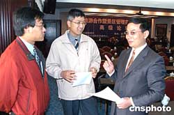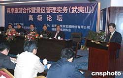 來(lái)自金門、馬祖、臺(tái)灣及祖國(guó)大陸的近百名旅游業(yè)界及相關(guān)人士十二月十六日在福建武夷山出席由中國(guó)新聞社、福建省文化經(jīng)濟(jì)交流中心以及武夷山市政府聯(lián)合主辦的兩岸旅游合作暨景區(qū)管理實(shí)務(wù)高級(jí)論壇開幕式并踴躍發(fā)言,為兩岸旅游業(yè)界的合作與交流建言獻(xiàn)策。