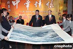 澳門(mén)特區(qū)行政長(zhǎng)官何厚鏵在開(kāi)幕儀式上接受贈(zèng)畫(huà)。作者:宗金柱