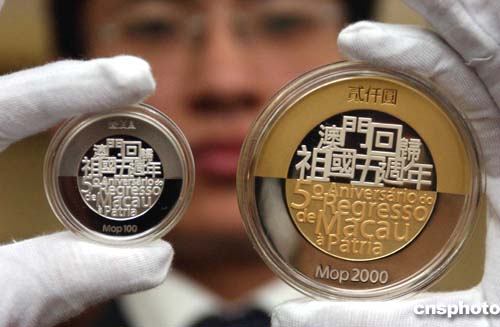紀念幣面額為澳門元兩千元、一千元、五百元、二百元和一百元五種。全部由中國印鈔造幣總公司生產,并在內地獨家負責銷售。首批紀念幣將在本月二十日分別在北京、上海、廣州、天津、深圳、西安、太原等城市上市銷售。