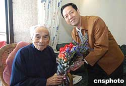 一生奉獻(xiàn)教育事業(yè),親身見證澳門回歸的九十八歲老歸僑梁披云,接受中新社記者采訪時(shí)為澳門升平景象感欣慰,當(dāng)他接過中新社香港分社總編輯周景洛的鮮花時(shí)面露喜悅。作者:梁永強(qiáng)