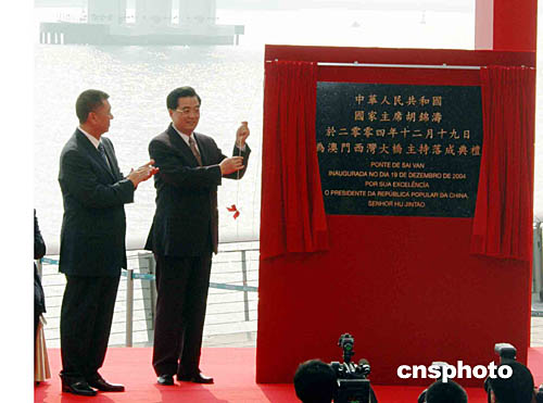 胡錦濤為澳門西灣大橋紀(jì)念牌匾揭幕