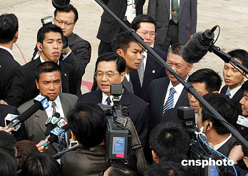 圖:胡錦濤在澳門機場向記者發(fā)表講話