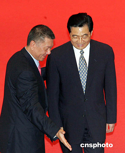 國(guó)家主席胡錦濤在澳門回歸五周年慶祝大會(huì)上發(fā)表重要講話后,何厚鏵請(qǐng)胡錦濤就座。