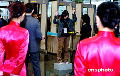 澳門回歸祖國五周年大型活動組織嚴密,一些重要活動都要對進場人員進行嚴格安全檢查,以確保萬無一失。作者:宋吉河