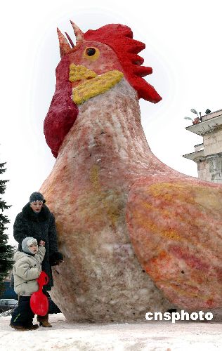 俄羅斯70噸雪雕大公雞迎新年