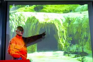 發(fā)布會上,李進(jìn)先播放了他于11月2日在九寨溝國家森林公園采風(fēng)時拍攝的錄像帶。畫面顯示,神仙池鈣化層上搭建了人工景觀,神仙池鈣化堤上留有一串串清晰的腳印。李進(jìn)指著投影大屏幕肯定地說,這都是《神雕》劇組干的好事。隨后,李進(jìn)又播放了他與神仙池管理辦公室主任的談話錄音。錄音中,“辦公室主任”稱《神雕》劇組在10月10日,不顧管理局的阻止私自搭景,并進(jìn)入鈣化池工作,“我們早就跟劇組說不能這么干了,可他們還是不聽。最后在當(dāng)?shù)夭孛竦膹?qiáng)烈抗議下,張紀(jì)中他們出來了,但沒有進(jìn)行其他處理”。