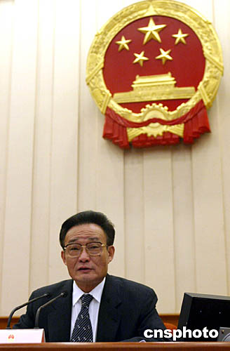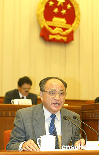 受委員長會議委托,全國人大常委會法制工作委員會主任胡康生就委員長會議提請審議的反分裂國家法草案作了說明。