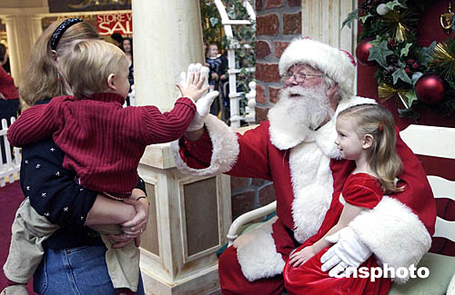 當(dāng)?shù)貢r間十二月二十四日圣誕節(jié)前夕,硅谷最重要的城市圣荷西的圣誕老人在購物中心關(guān)門前的最后一分鐘還在向孩子們祝賀圣誕。作者:陳鋼