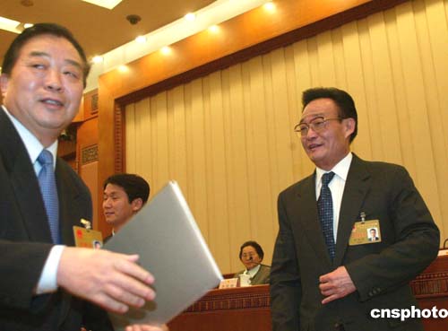中新社北京十二月二十九日電(記者齊彬)第二任澳門特別行政區(qū)基本法委員會(huì)組成人員今天確定,喬嘵陽和李成俊續(xù)任委員會(huì)主任和副主任,全國(guó)人大常委會(huì)委員長(zhǎng)吳邦國(guó)向他們和另外八位委員頒發(fā)了任命書。