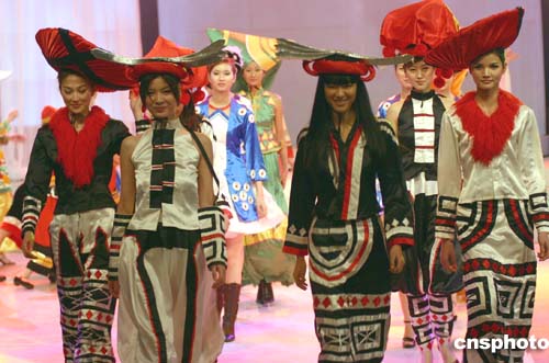 第十屆中國模特之星大賽冠軍莫萬丹(右一)、第五屆CCTV模特電視大賽總冠軍郭思雅、二00三年度中國首席名模王敏等二十多位名模,十二月三十日晚在廣西電視臺(tái)組織的《冠軍風(fēng)采》晚會(huì)上一展個(gè)人才藝,同時(shí)展演了時(shí)裝設(shè)計(jì)大師的作品。作者:蔣雪林