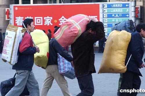 離中國農(nóng)歷新年春節(jié)尚有一個多月,北京西客站已出現(xiàn)“民工返鄉(xiāng)潮”。據(jù)交通部門的預(yù)測,二○○五年春運期間鐵路方面旅客量將達(dá)一點四五億人次,同比增長百分之三點五。作者:韓藝冰