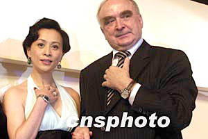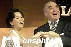 五月十三日晚,劉嘉玲現(xiàn)身北京,為瑞士斯沃琪公司旗下的著名手表品牌經(jīng)典“浪琴表典藏”系列助興。圖為劉嘉玲(左)與浪琴表全球總裁霍凱諾(右)展示新款手表。作者:高遠(yuǎn)