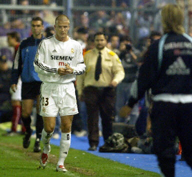 在皇馬客場1:2敗給降級(jí)球隊(duì)穆爾西亞隊(duì)的比賽中,貝克漢姆在第36分鐘時(shí)用言語侮辱邊裁,被紅牌罰下。