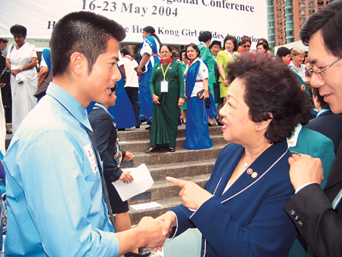 中新網(wǎng)5月18日電 據(jù)香港大公報報道,作為今年的女童軍國際親善大使,郭富城昨日應(yīng)邀出席女童軍“第八屆亞洲太平洋區(qū)會議”,同場的還有特首夫人董趙洪娉女士;顒悠陂g,“城城”和董太不時交談,原來董太想邀請他出席一些公益活動,希望他可以幫手。