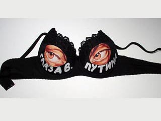 這次新的藝術(shù)品展覽包括25件胸罩,比爾佐表示,這些當(dāng)中有一個是獻(xiàn)給庫土索夫的,另一個是描述普京的眼睛,前蘇聯(lián)總統(tǒng)勃列日涅夫 的眉毛, 赫魯曉夫臉上的瑕疵,以及葉利欽時代的統(tǒng)治。