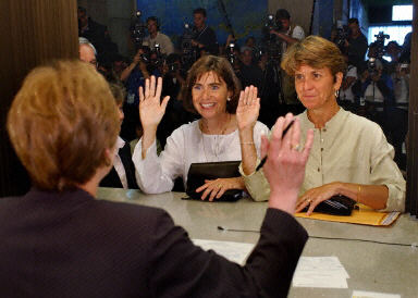 5月17日這一天,美國同性伴侶在美利堅(jiān)的土地上將第一次獲得合法婚姻的權(quán)利。馬薩諸塞州最高法院2003年11月裁定,禁止同性戀者結(jié)婚違反反歧視法,因此將從2004年5月17日起允許同性戀者在該州登記結(jié)婚。