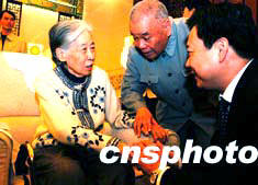 五月十九日,山東省臨沂市在北京人民大會(huì)堂舉行《沂蒙頌歌》大型叢書贈(zèng)書座談會(huì),劉少奇夫人王光美等多位老將軍及夫人到會(huì)祝賀。圖為中共臨沂市委書記李群向王光美表示問候。作者:王麗南