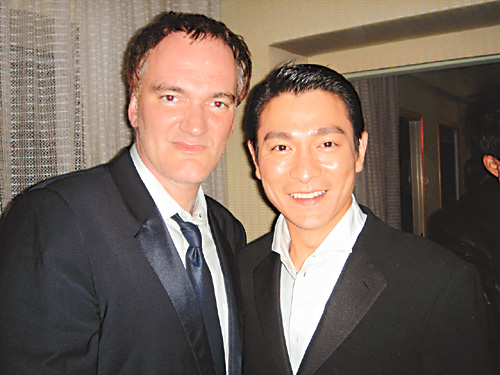 《十面埋伏》昨晚在戛納展映,氣氛異;鸨ネ〉热艘驳竭_(dá)捧場。在展映后的酒后中,昆汀拉著華仔敘談,稱華仔的114部電影他全部看過,是華仔的一個(gè)影迷。