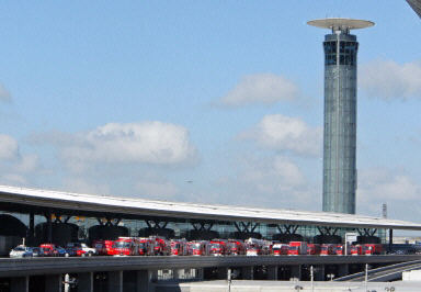 巴黎戴高樂機(jī)場坍塌事故現(xiàn)場。消防及救護(hù)車輛排起長龍。