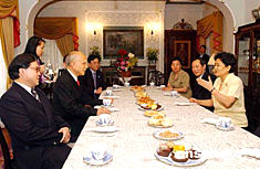 全國政協(xié)副主席、中共中央統(tǒng)戰(zhàn)部部長劉延東25日下午抵達香港,隨即到全國政協(xié)副主席霍英東家看望霍英東,與霍英東父子親切交談。作者:洪少葵