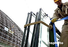 中新網(wǎng)5月27日電 據(jù)《新京報(bào)》報(bào)道,昨日下午3時(shí)左右,國家大劇院“巨蛋”橢球屋面的第一塊玻璃幕墻成功安裝。此次安裝的玻璃幕墻是國家大劇院最先安裝的外墻玻璃,預(yù)計(jì)這1126塊超白平板玻璃將在6月底之前全部安裝完畢。到時(shí)候,人們就可以透過這些超透明玻璃清晰地看到國家大劇院內(nèi)的一切景觀。