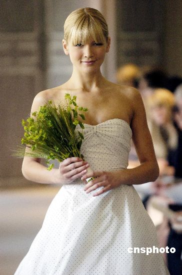 美國(guó)紐約最近舉行2004/05婚紗時(shí)裝周,各種風(fēng)格的婚紗紛紛登臺(tái)亮相,或端莊典雅,或熱情奔放,使到場(chǎng)觀眾大開(kāi)眼界--原來(lái)婚紗也可以設(shè)計(jì)得如此多姿多彩。Ic/cnsphoto 攝