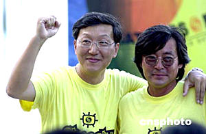 為紀念鄭和下西洋六百周年,一艘命名為“鳳凰號”的單桅帆船將由翁以煊、鄭浩駕駛于七月十三日從當年鄭和寶船開出的南京出發(fā),展開歷時八個月的航海電視行動。圖為五月二十七,“鳳凰號”船員在深圳大鵬灣浪騎游艇俱樂部與媒體記者見面。作者:陳文