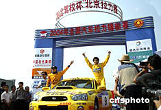 全國(guó)汽車?yán)﹀\標(biāo)賽“海淀駕校杯”北京站比賽,5月28日在北京海淀展覽館發(fā)車,臺(tái)灣藝人林志穎(右)駕駛佳通輪胎車隊(duì)車參賽。中國(guó)新聞社:盛佳鵬