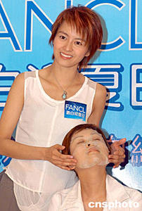 歌星梁詠琪5月29日在香港出席其代言化妝護膚品《FANCL激白迎夏日》宣傳展覽會,梁詠琪邀請現(xiàn)場觀眾,親自為她敷上面膜。作者:鄧慶樂