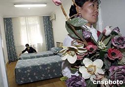 二零零四年高考臨近,北京各星級(jí)酒店的高考房經(jīng)濟(jì)大戰(zhàn)紛紛提前打響。位于人大附中、北大附中等考點(diǎn)附近的友誼賓館六月一日至六月二十六日推出高考房,并將蘇州園林風(fēng)格的公寓套間作為考生的“避暑房”,為考生提供幽雅安靜的學(xué)習(xí)環(huán)境。中新社記者:張勤