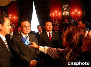 當(dāng)?shù)貢r間五月三十日,即將結(jié)束對保加利亞友好訪問的中國全國人大常委會委員長吳邦國在索非亞接受媒體記者的采訪。中新社記者:戴亞平