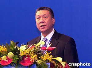 “泛珠江三角洲區(qū)域合作與發(fā)展論壇”澳門段二日在澳門旅游塔會展中心舉行論壇演講。作者:梁永強  澳門行政長官何厚鏵在會議上致辭。作者:梁永強