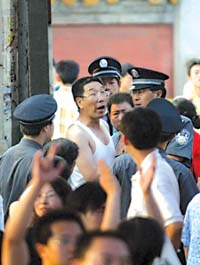 昨天16時(shí)50分,離演出開始還有10分鐘,地壇方澤壇內(nèi)就涌入了數(shù)百名搖滾樂(lè)迷。17時(shí),主辦方突然抱歉地向觀眾解釋,為了不影響高考,演出延遲30分鐘舉行。20多分鐘后,在焦急地等待中,這場(chǎng)公益“搖滾大餐”終于開場(chǎng)。包著紫白相間頭巾、戴著墨鏡的瘦人樂(lè)隊(duì)主唱戴秦一亮相,就引來(lái)臺(tái)下觀眾一陣陣夾雜著尖叫和口哨聲的熱烈吶喊。戴秦一口氣唱了兩首勁歌,精彩紛呈的表演和震耳欲聾的音樂(lè)讓臺(tái)下的歌迷叫得聲嘶力竭。