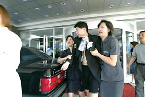民建大廈內(nèi)的京展擔(dān)保公司的員工紀(jì)建雷稱,兩名男子從4樓西側(cè)南邊垂下一條被單結(jié)成的繩子,一人順著繩子慢慢往下溜,剛溜到三樓,“突然間,逃生繩從中間斷開了!他一下子摔了下來。”紀(jì)先生說,該男子摔到地上后晃晃悠悠地站了起來,還沒走兩步就倒在地上,連喊救命。就這一會(huì)兒的工夫,火迅速躥到4樓。