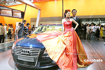 6月9日是2004年北京國(guó)際汽車(chē)展覽會(huì)開(kāi)幕前一天的新聞日,一批名模出現(xiàn)在名車(chē)展臺(tái),在各大汽車(chē)廠商推出的精彩節(jié)目中亮相。魯谷 攝