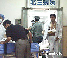 六月十日上午,北京市積水潭醫(yī)院正在全力搶救六月九日京民大廈火災(zāi)中的受傷人員。這場火災(zāi)當(dāng)時(shí)共造成9人死亡,39人受傷。作者:韓藝冰