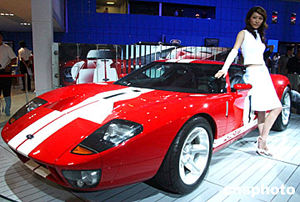 六月中旬,在北京中國(guó)國(guó)際展覽中心舉行的“2004北京國(guó)際車展”上,福特GT跑車亮相展會(huì),讓觀眾眼前一亮。中新社記者:武仲林