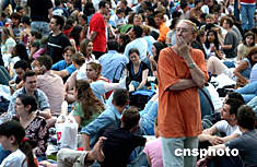 美東時間六月十四日晚,美國戲院和制作人聯(lián)合會給紐約人奉上一臺免費的百老匯“大餐”——七十五分鐘的《星光下的百老匯》歌舞晚會。演出開始前,已有一萬多人到紐約中城的布萊恩特公園“占座享受輕松時刻。作者:陳建