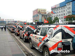 中國禁毒志愿者汽車萬里行車隊,六月十六日抵達湖北省宣傳禁毒。作者:艾啟平