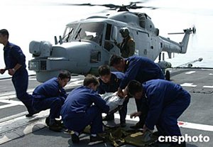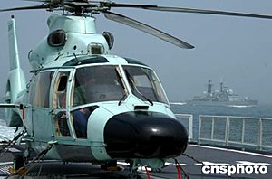 北海艦隊“哈爾濱”號導彈驅逐艦、“洪澤湖”號綜合補給艦、“海豚”艦載直升機和英國皇家海軍“埃克塞特”號導彈驅逐艦、“山貓”艦載直升機參加此次非傳統(tǒng)安全領域的聯合演習。