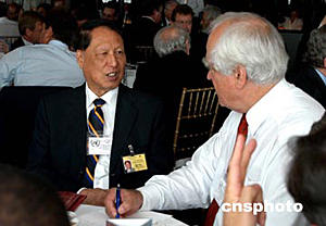 美東時間六月二十四日,全球契約領(lǐng)導(dǎo)人高峰會議在紐約聯(lián)合國總部舉行。該峰會旨在呼吁全球商業(yè)機(jī)構(gòu)、社會團(tuán)體和勞工組織,與政府協(xié)力,保護(hù)人權(quán)、改善勞工條件和加強(qiáng)環(huán)境保護(hù)。圖為中國全國人大常委會副委員長成思危(左)出席峰會圓桌會議。作者:陳建